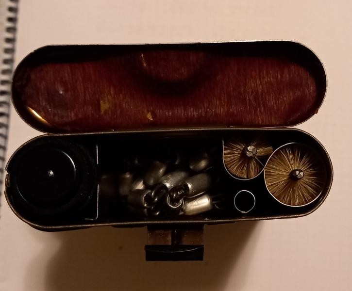 Kit de limpieza Mauser k98 completo con aceitera ,cadeneta, cepillo y juego de feminelas nuevo de arsenal y producido en posguerra para este modelo.