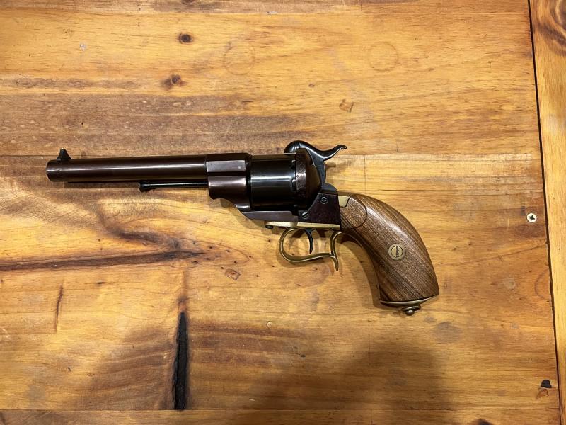 Se vende revólver Lefaucheux original fabricado en Paris en el taller de Eugène Lefaucheux en 1859; no copia, totalmente original y funcional, calibre 12mm de espiga, Mecaniza a la perfección, estado excelente y restaurado conforme al estado original, e inscrito en libro de Coleccionista. Depositado en una armería de Valencia.