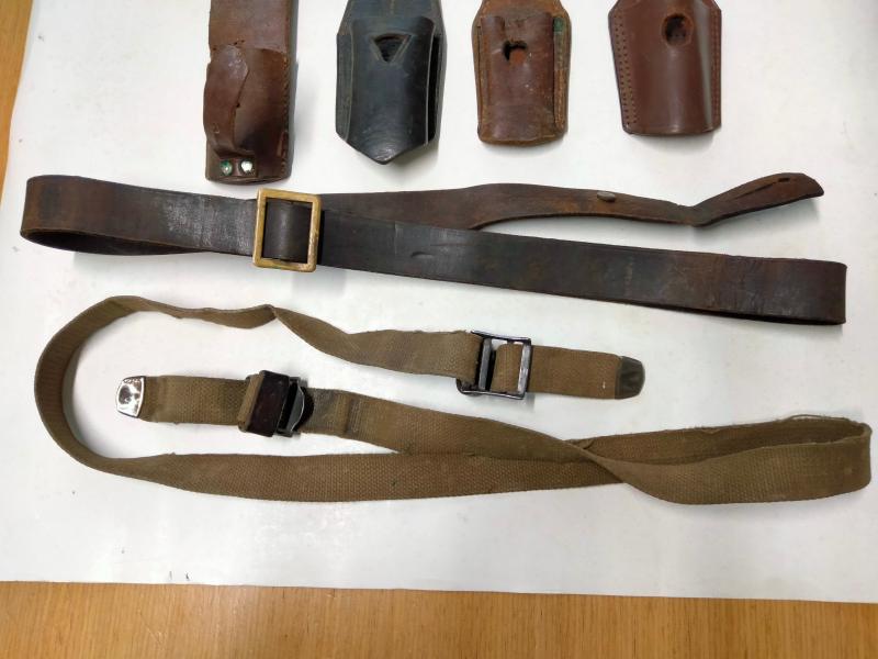 Las dos correas son , la de cuero del Mauser Coruña 43 usada VENDIDA y la de lona del subfusil UZI , muy usada en 15 euros