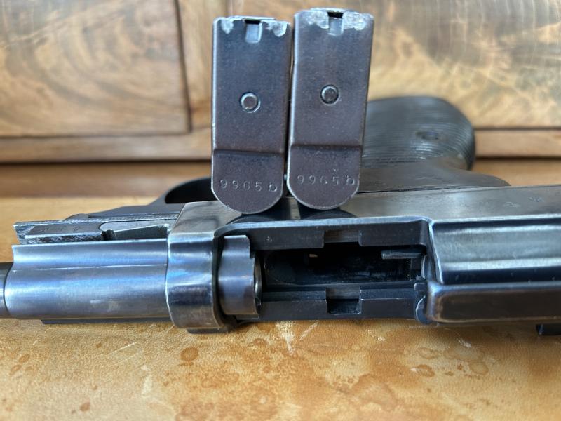 Te aplaudo tu gusto porque veo que sabes apreciar lo exclusivo, este es un conjunto muy raro de encontrar ya que las P38 con cargador numerado solo se encuentran en las AC y solo en el periodo que va de su inicio hasta Marzo de 1942 pero no en las BYF (Mauser) ni en las CYQ (SpreeWerke).