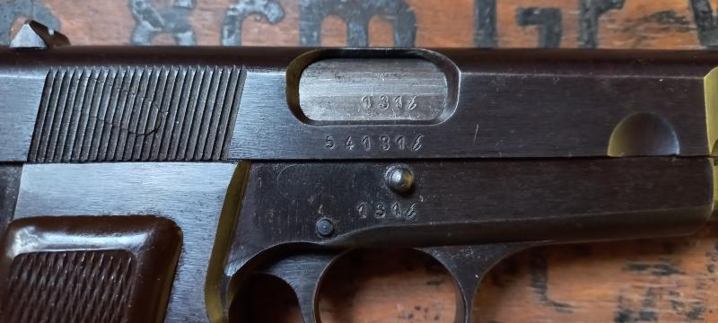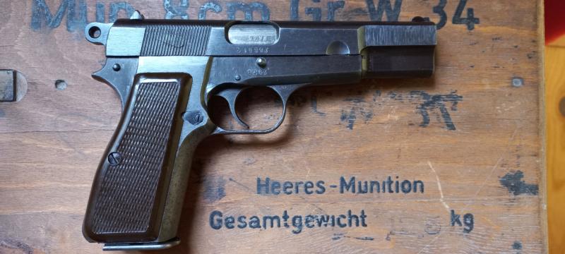 Este fantástica FN HP de producción de 1944 serie b con cachas de bakelita esta inscrito en mi libro de coleccionsita como arma Historica.