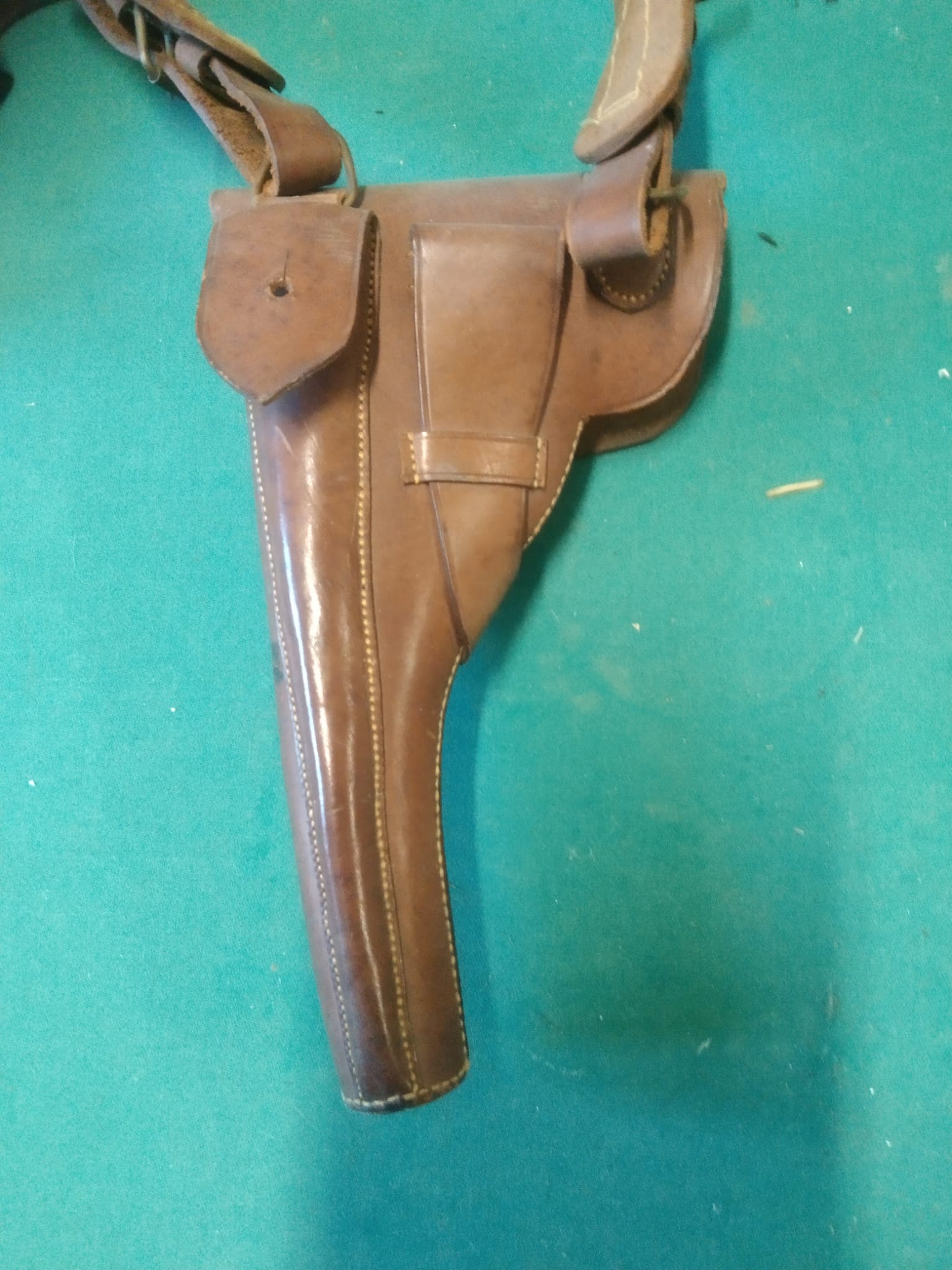 Hola! Por fotos es complicado datar nada. Pero tu impresión me parece correcta. El cuero no parece tener tantos años, ni de confeccionada, y menos de uso en servicio. Y las costuras se ven perfectas, perfectas...demasiado. Sin ser categórico, no lo veo sinceramente...si lo que buscabas era una original de época, yo seguiría con la búsqueda. Un saludo, y suerte!
