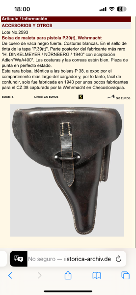 Ya lo se porque he escrito “funda alemana para la pistola checa CZ vz.38”, si fuera para P38 y en ese estado su precio rondaría los 500€