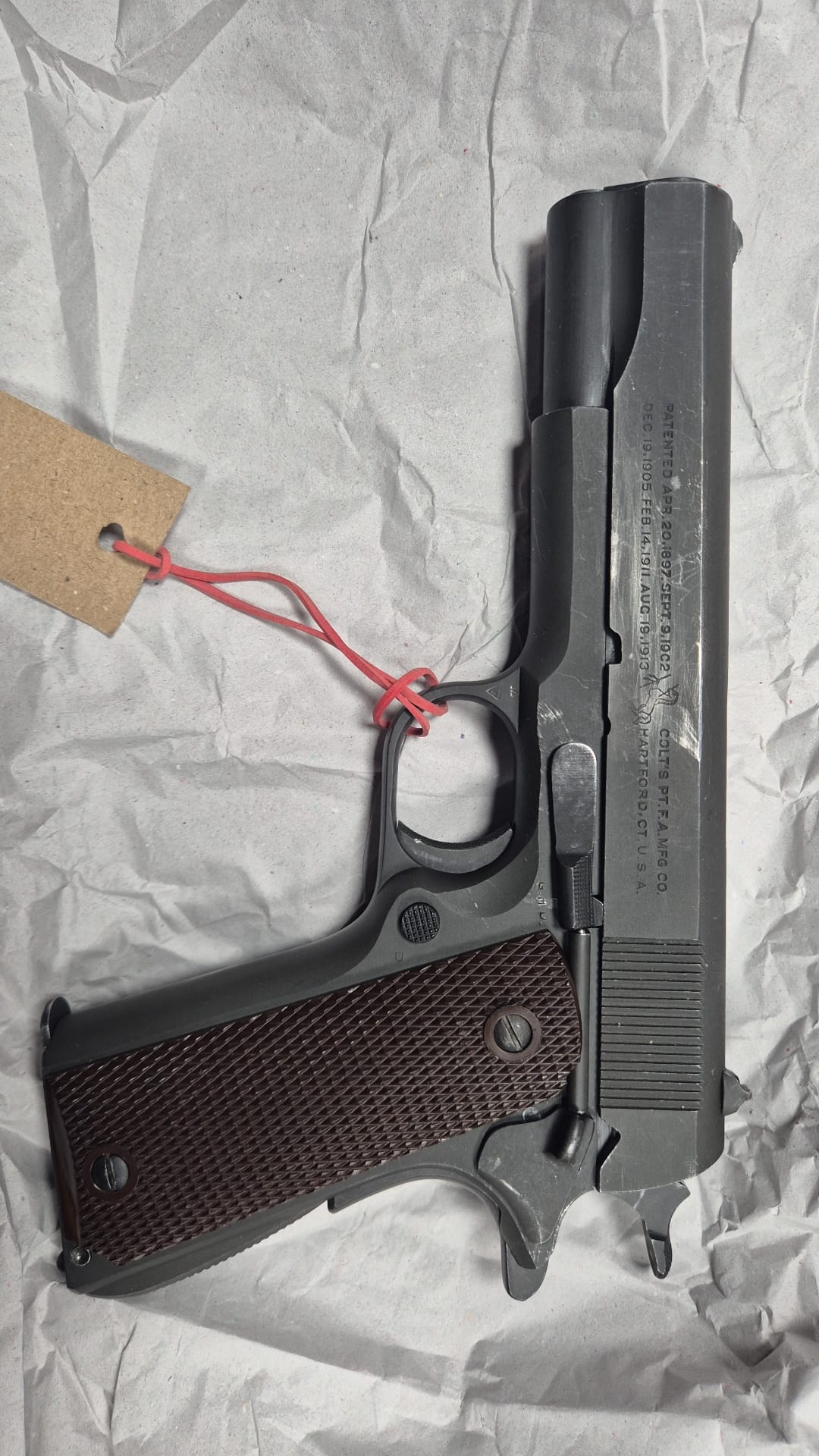 Muy bonita y difícil de ver en España una Colt original de la Segunda Guerra Mundial. Me encantaría para tiradas histórico militar. Lástima de cupo.