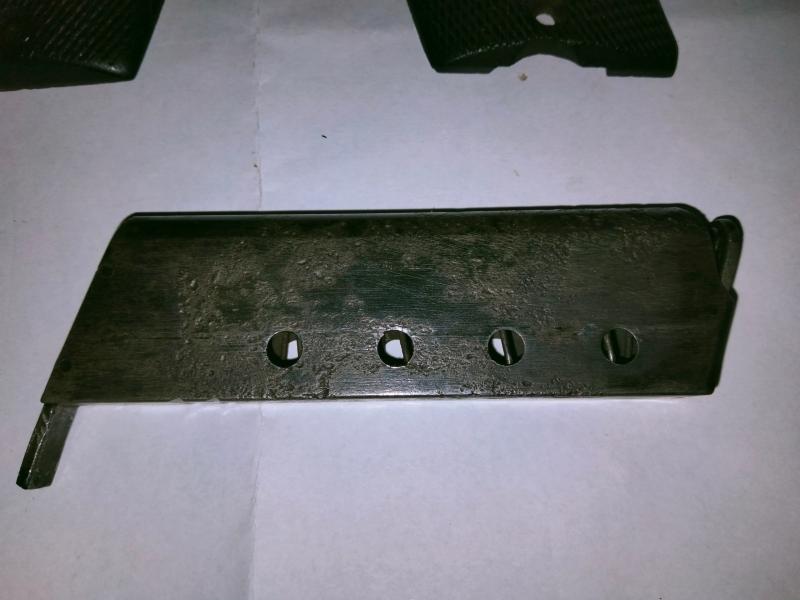 Hola, pongo a la venta un juego de cachas de madera de nogal para la pistola Austriaca Steyr modelo 1908 del calibre 7,65 en 60 euros y un cargador original que ha estado con oxido y ahora esta limpio en 45 euros , no hay tornillos