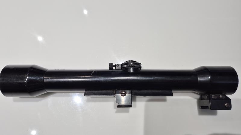 visor Carl zeiss Jena zielvier 4x32 número 71756 , con monturas de uñas , era de un express Holland&Holland, esta grabado por esta marca, funciona perfectamente y la óptica impecable, un visor de colección, aunque se puede usar sin problema alguno, tiene su estuche ingles de piel. 850€.