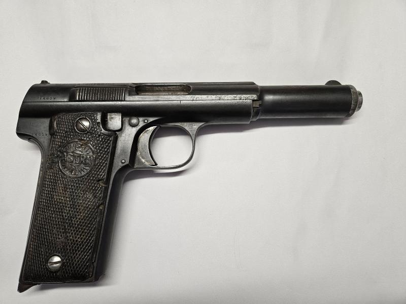 El calibre de esas pistolas es 9 "Largo " (9x23) reglamentario en la época. Un saludo.