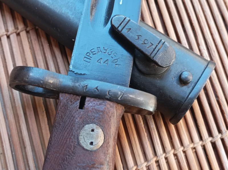 -BAYONETA M- 48, buena calidad, fue fabricada en Kragujevac localidad serbia, hoy es la fábrica Zastava, la hoja está marcada en caracteres cirílicos ЛРЕДУЗЕЋЕ 44 (PREDUZECE 44 que significa FABRICA 44) La bayoneta tiene cachas de madera, hoja en perfecto estado y funda con números coincidentes nº 1697, en buenas condiciones.