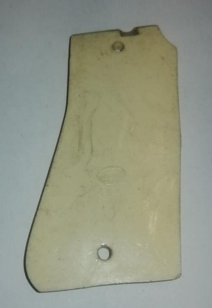 Cacha original izquierda pistola Astra 3.000 en plástico crema fabricada y marcada por Oramil. Se encuentra en un estado más que aceptable. Precio 15 euros.