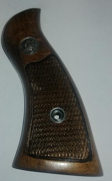 Cacha original izquierda de madera del revólver Llama Comanche. Se encuentra en muy buen estado. Precio 15 euros.