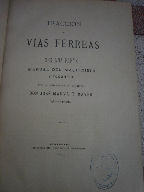 359 paginas , Enc. en media piel 25x17. Imp. del Memorial de Ingenieros. Madrid, 1878.