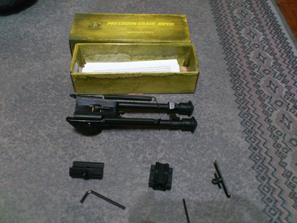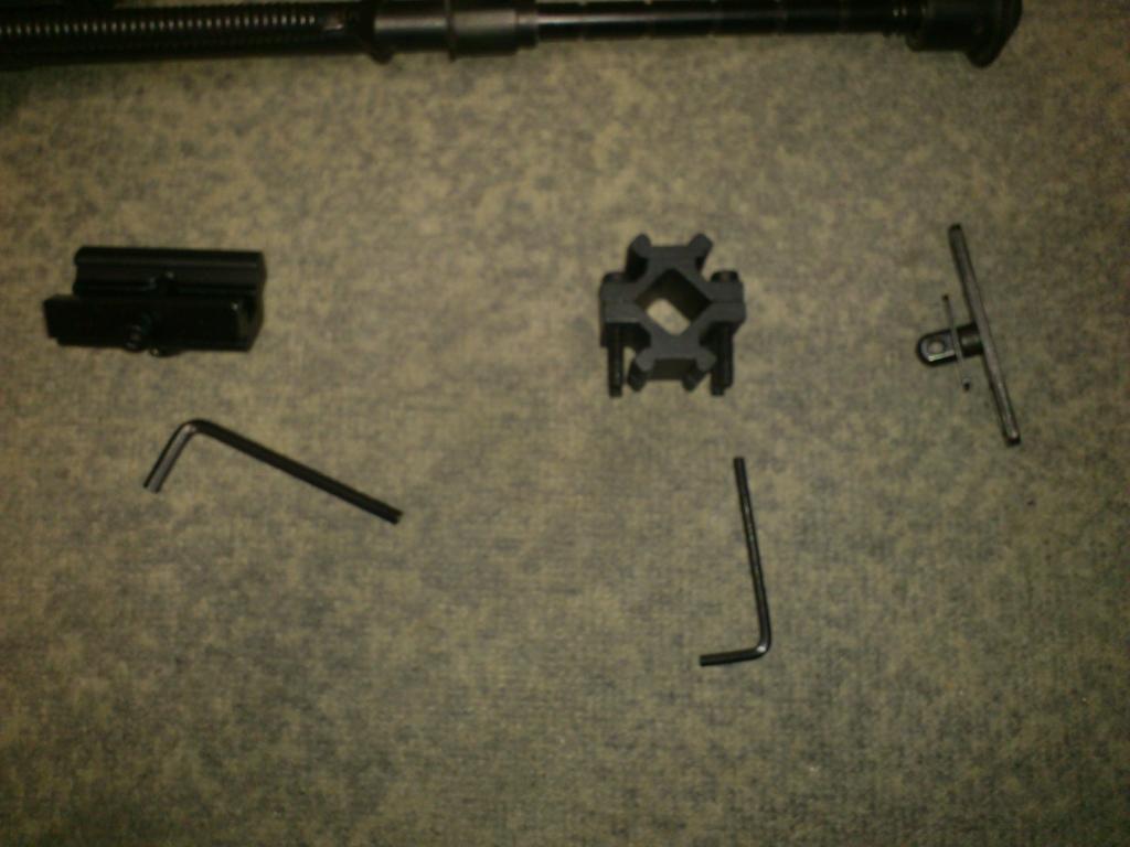 - El bípode se puede montar en la anilla de la correa del portafusil, además incluye un adaptador para el guardamos del AR-15, un adaptador para montarlo en un carril Picatinny/Weaver y un adaptador para montarlo en el cañón (3 adaptadores incluidos).