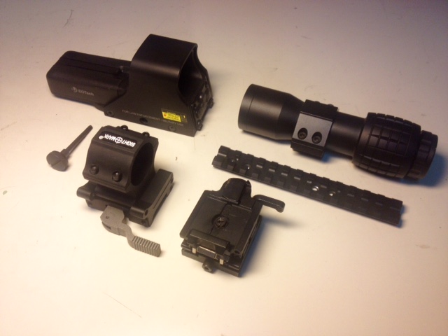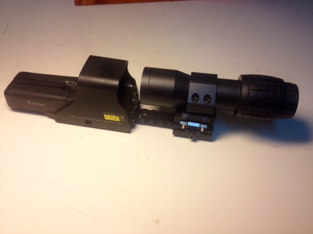 Vendo visor holografico EOTech 512 en perfecto estado acompañado de un magnificador de 5X y dos monturas flip a-side, (monturas de apertura rapida lateral). 400€.