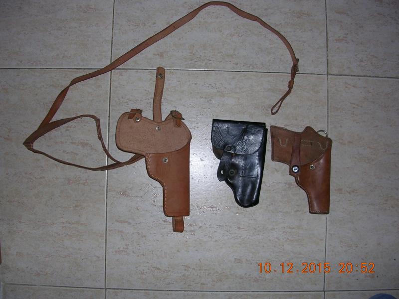 Las fundas están en Tarragona, si te fijas en la negra falta la funda para el cargador, se ve la costura, dije portacargador y quizá me expliqué mal, las dos marrones están nuevas, el precio la verdad es que no se, pero si quieres las tres y te parece bien 55 euros gastos de envío por correo certificado incluidos, sino, pon tu el precio y lo hablamos, si las quieres por mensajería (TIPSA), 60 euros las tres, la de la izquierda, como ves, es sobaquera.
