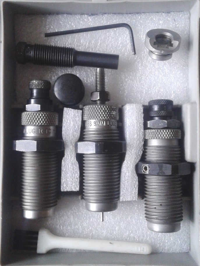 Vendo dais del calibre 9 mm parabellum de la marca "RCBS", incluyen Shell holder para prensa. Están en perfecto estado de uso.