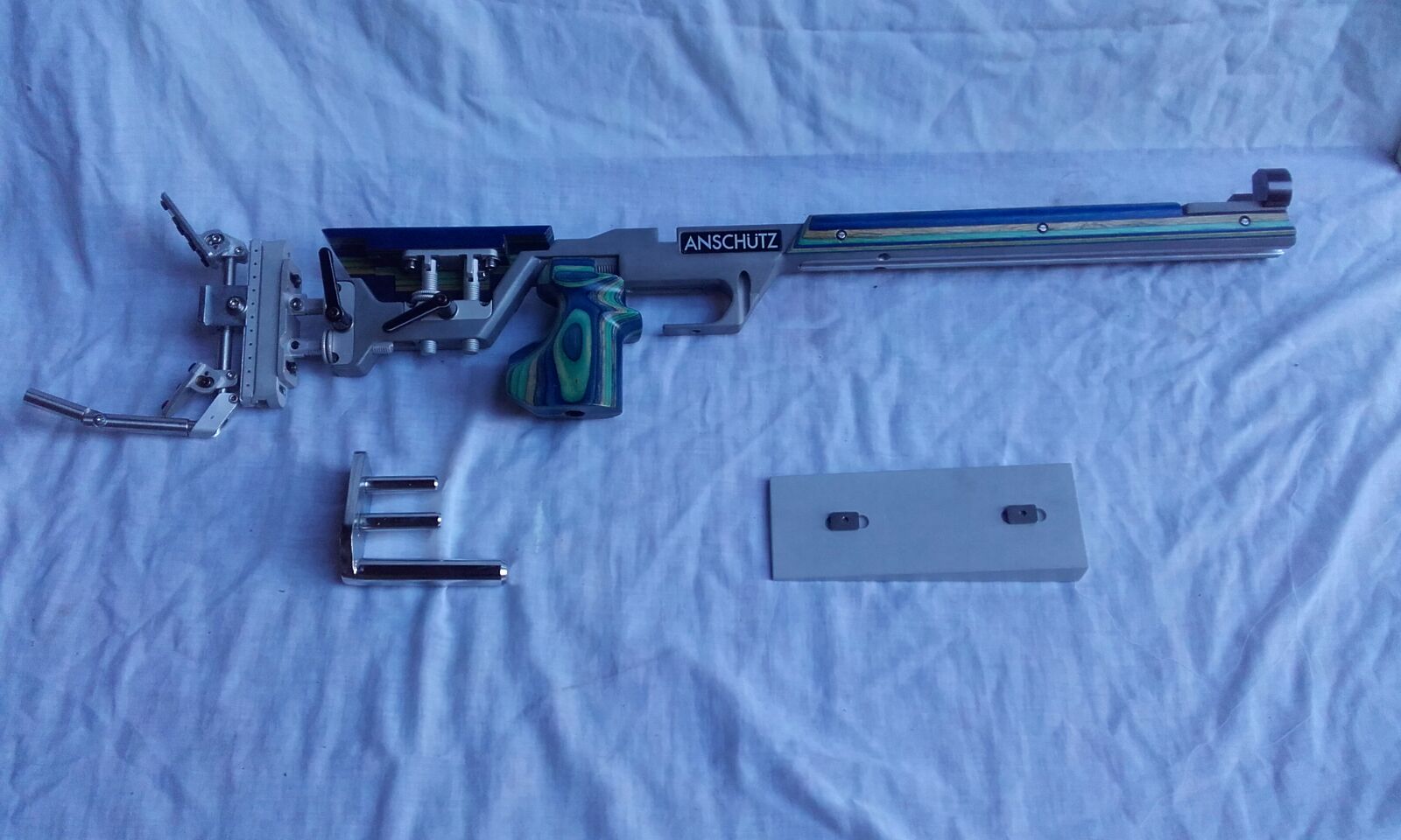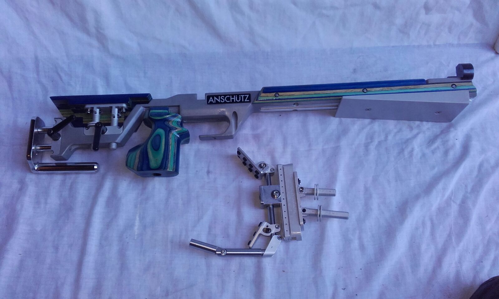 Anclaje plano de 4 tornillos pudiendo tambien montar cualquier accion redonda con el adaptador de anschutz.