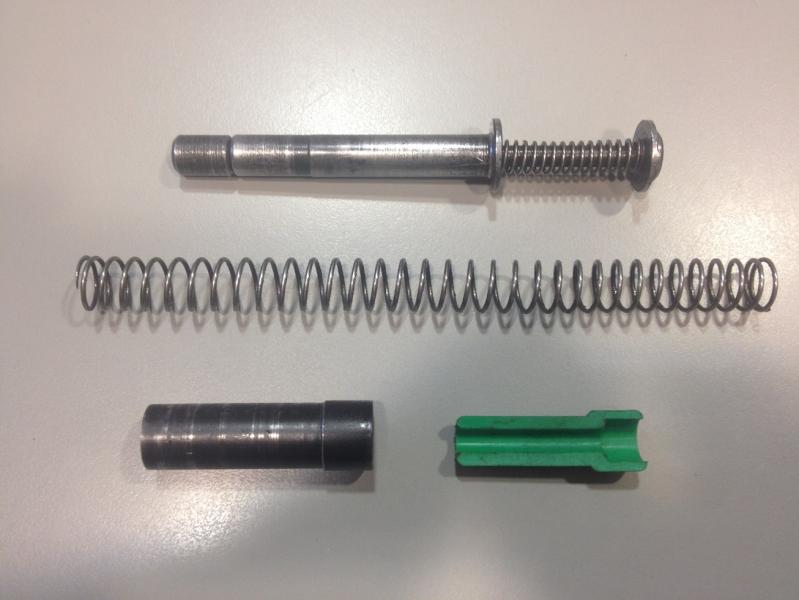 Es de la marca STI, con muelle principal de 10 libras y se ha utilizado muy poco tiempo en una pistola de la misma marca, pero es compatible con cualquier arma de plataforma 1911 y 2011.