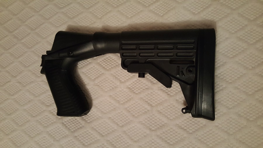 Por si fuese de interés para alguien, cambio culata Blackhawk Knoxx NSR para Mossberg 500/590, por culata sintética original Mossberg, culata sintética clásica similar o culata Magpul SGA para Mossberg 500 (sólo la culata, no el guardamanos), ajustando diferencia en el caso de la Magpul SGA.