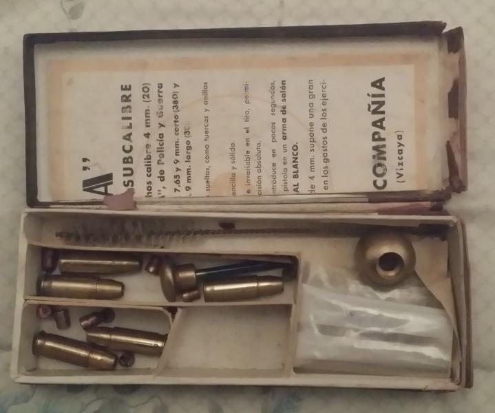 vendo caja original con los accesorios del equipo reductor de tiro cartuchos falsos, extractor , yunque y baqueta para astra 400 9 largo que permite disparar balines de 4mm para tiro de salón. Sin tubo reductor, solo se venden todos los accesorios que aparecen en la foto junto con la caja , no se venden separados. pieza histórica 70 euros. gastos de envio incluidos contesto por privado