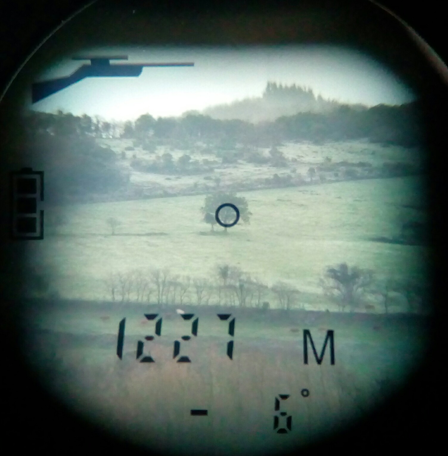 Modo rifle - ofrece datos de caída de bala en pulgadas o centímetros de 100 a 800 yds/100 a 730 m