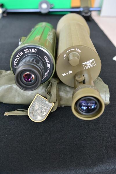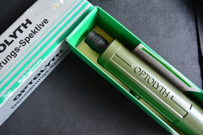 El primero es un Optolyth 30x60 forrado en goma con recubrimiento Ceralin, con conector para rosca de medida 1/4" y 3/8" longitud 33 cm y sistema de enfoque helicoidal en el ocular. Optica y mecánica en excelente estado, comprado nuevo hace años en una óptica que cerraba, literalmente nuevo a excepción de un par de marcas en la zona de la rosca de acoplamiento al haberlo tenido montado en una zapata Manfrotto. Va con su caja y garantia originales y tapa cubreocular. Precio 325 euros.