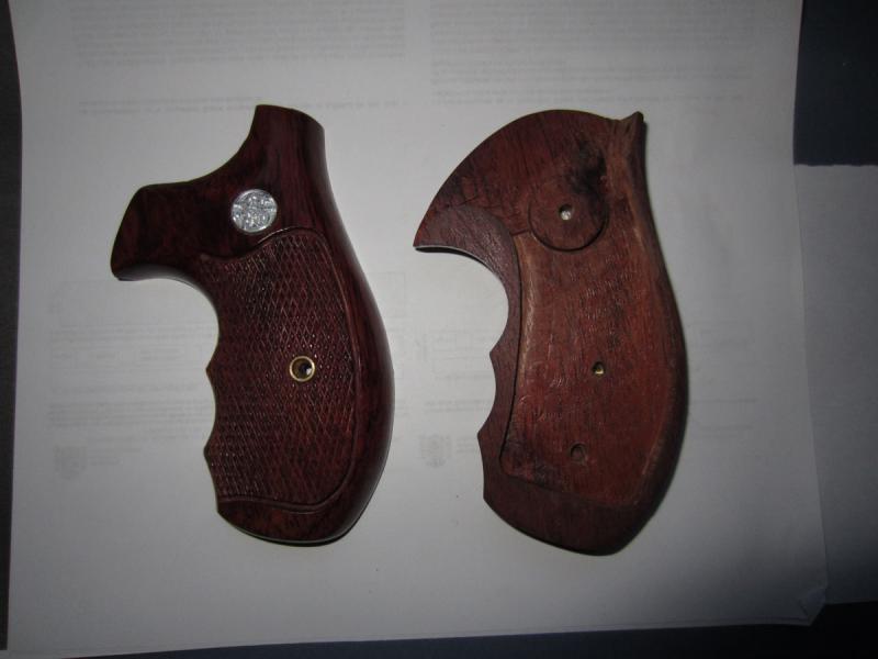 Pues eso, que vendo estas cachas sin estrenar para 686 o similar, de armazón K y redondo. Sólo tiene un retoque para intentar ponerlas en un 625 cal. 45ACP. Su precio sería de 30€ con los gastos incluídos para dentro de la península. Si alguna precisión se necesitara, mi tfno. es el 619534825. Saludos.