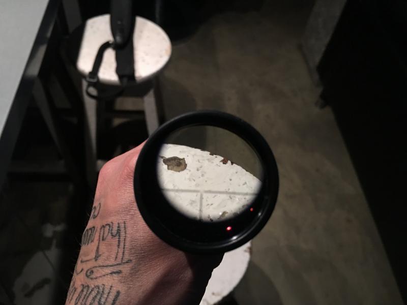 El visor tiene las típicas marcas de uso, pero no tiene ningún golpe ni abolladuras de las anillas.