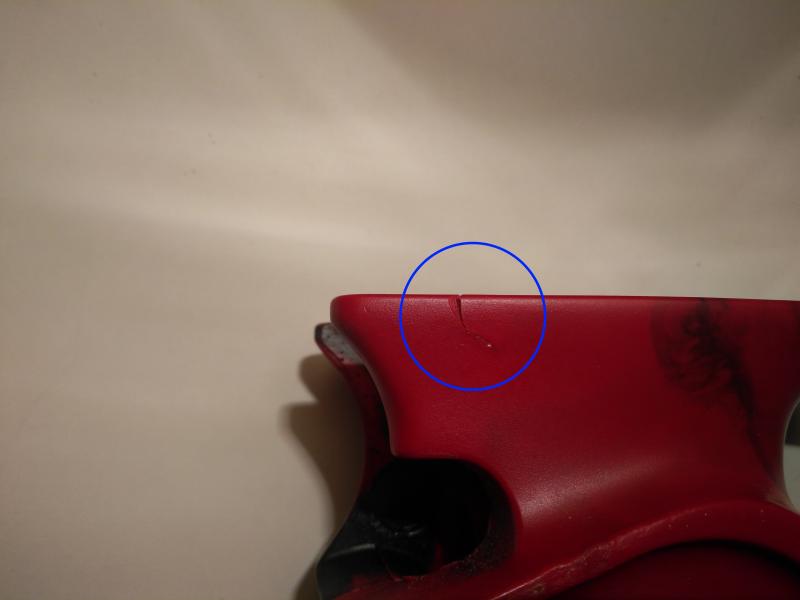 Las cachas son anatómicas. Presentan una pequeña grieta en la parte superior, que no interfiere con su uso normal y es fácilmente reparable con un poco de pegamento o masilla. He preferido no pegarlo yo para que sea el nuevo propietario el que lo haga a su gusto.