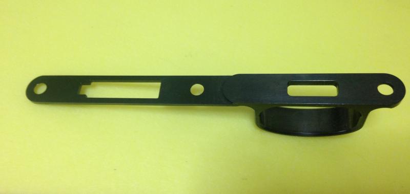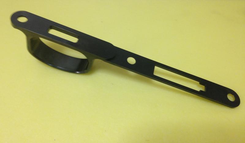 Está fabricado en acero por CNC y pavonado negro. Se desmonta el existente y su pletina (pieza número 55) y se coloca este otro sin más.