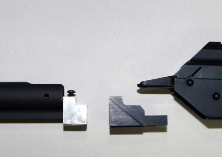 Además, la culata de saiga 12 tiene una entrada en el armazón, no? Si consigues una pieza de unión....