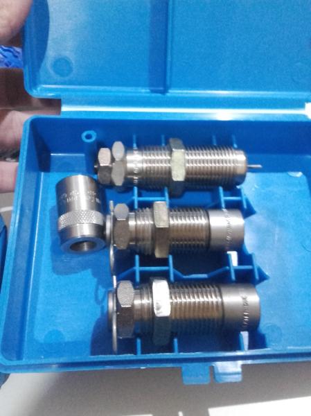 -Dies de recarga Dillon (desempistonador, asentar proyectil y crimpar).