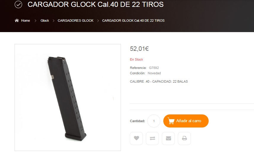 Re: VENDO CARGADOR PISTOLA GLOCK DEL 40SW DE ALTA CAPACIDAD (22 CARTUCHOS) PRECIO 30€