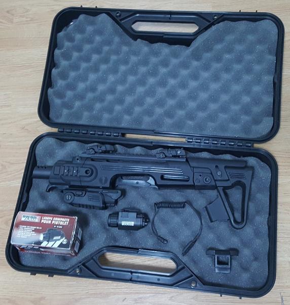 Vendo Kit Roni válido para Glock 17, 18, 19, 22, 23, 25, 31 Y 32, en excelente estado. Incluyo miras abiertas, linterna Swiss Arms, para rail picatinny con pulsador, y maletín original Hard Case para Roni; todo el conjunto tiene un valor superior a 800€, pido por él 500€, gastos de envío en la península a medias.