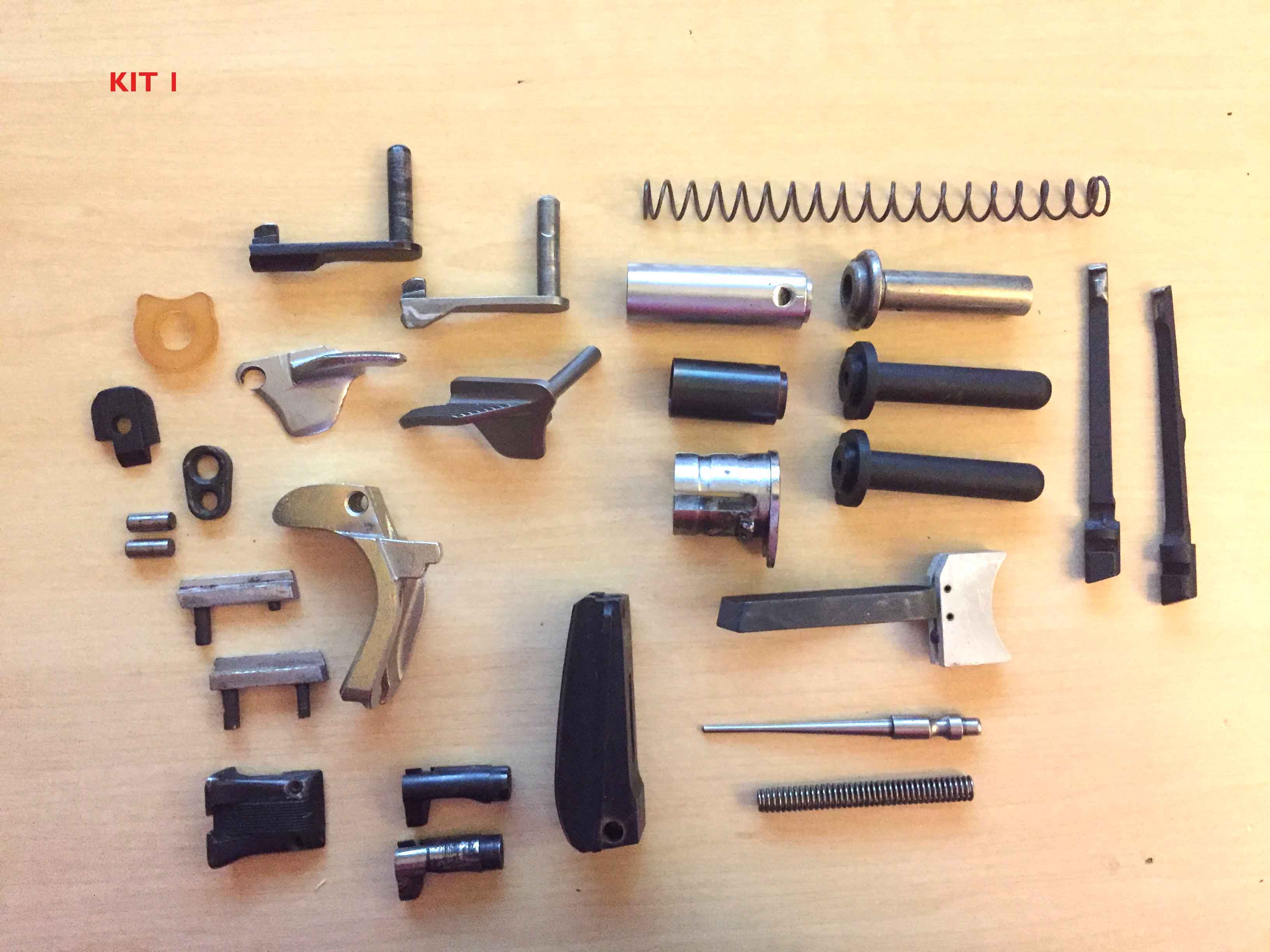 * Kit 1: estractoras, raberas, retenidas, expulsoras, botones retenida de cargador, muelle, seguro aleta, seguro empuñadura, etc,.... 80 euros, portes incluidos a peninsula