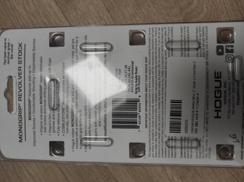 Vendo cacha hogue deteriorada por intento de ponerla en un revólver. Hubo que rajar el canto para sacarla. El interior también sufrió algún daño, pero es utilizable.