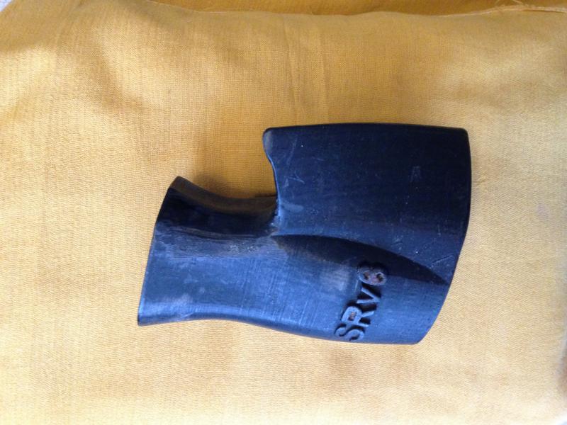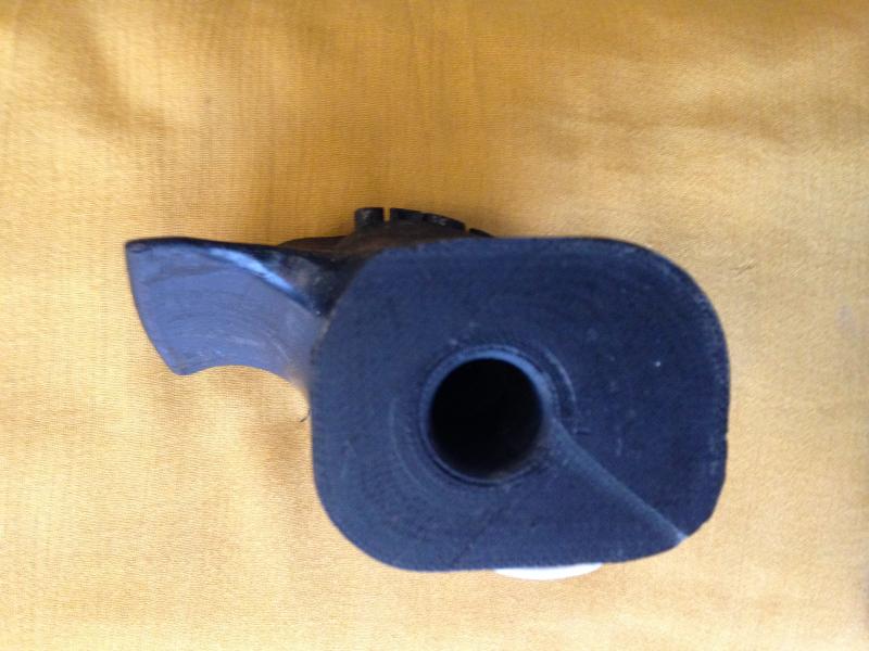 Sólida empuñadura de resina, entiendo manufacturada en un torno.