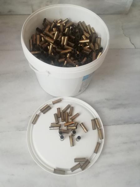 Por dejar este calibre vendo cubo de 5 kg. de vainas del 38 (no se cuantas puede haber) , son recogidas de las tiradas de vigilantes de seguridad, están lavadas a mano con mistol y vinagre, desempistonadas, recalibradas y abocardadas, por el tiempo guardadas sin usar han perdido brillo.