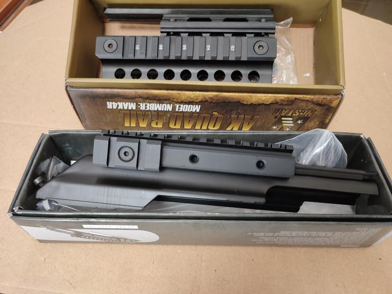 Vendo estos dos accesorios para tunear tu AK , los compré para un AK de airsoft y solo es compatible con los de verdad. Es un rail táctico fabricado en duraluminio y una tapa superior con un sistema de rail para poder acoplarle visor , llevando está unos tornillos en la parte trasera para un perfecto anclaje .