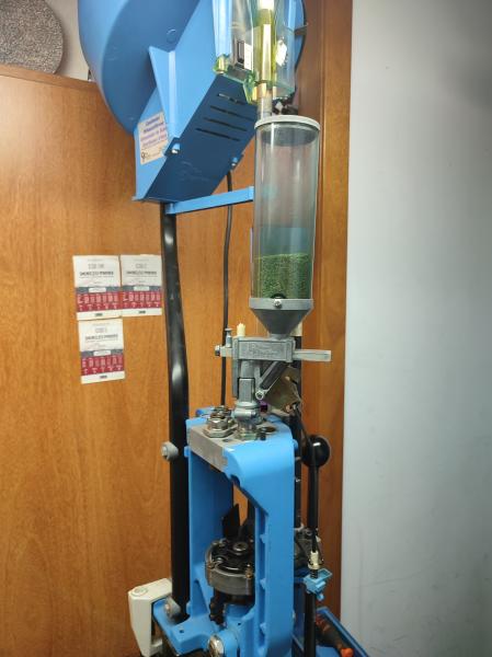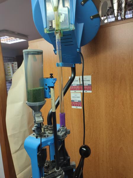 Viene montada con dies del 40 , pero tanto el Shell older ,la tolva y la rampa de alimentación de vainas admite 9 y 40, así que si se quiere pasar a 9 tan solo hay que ponerle dies, también viene con el funnel de abrir boca para ambos calibres