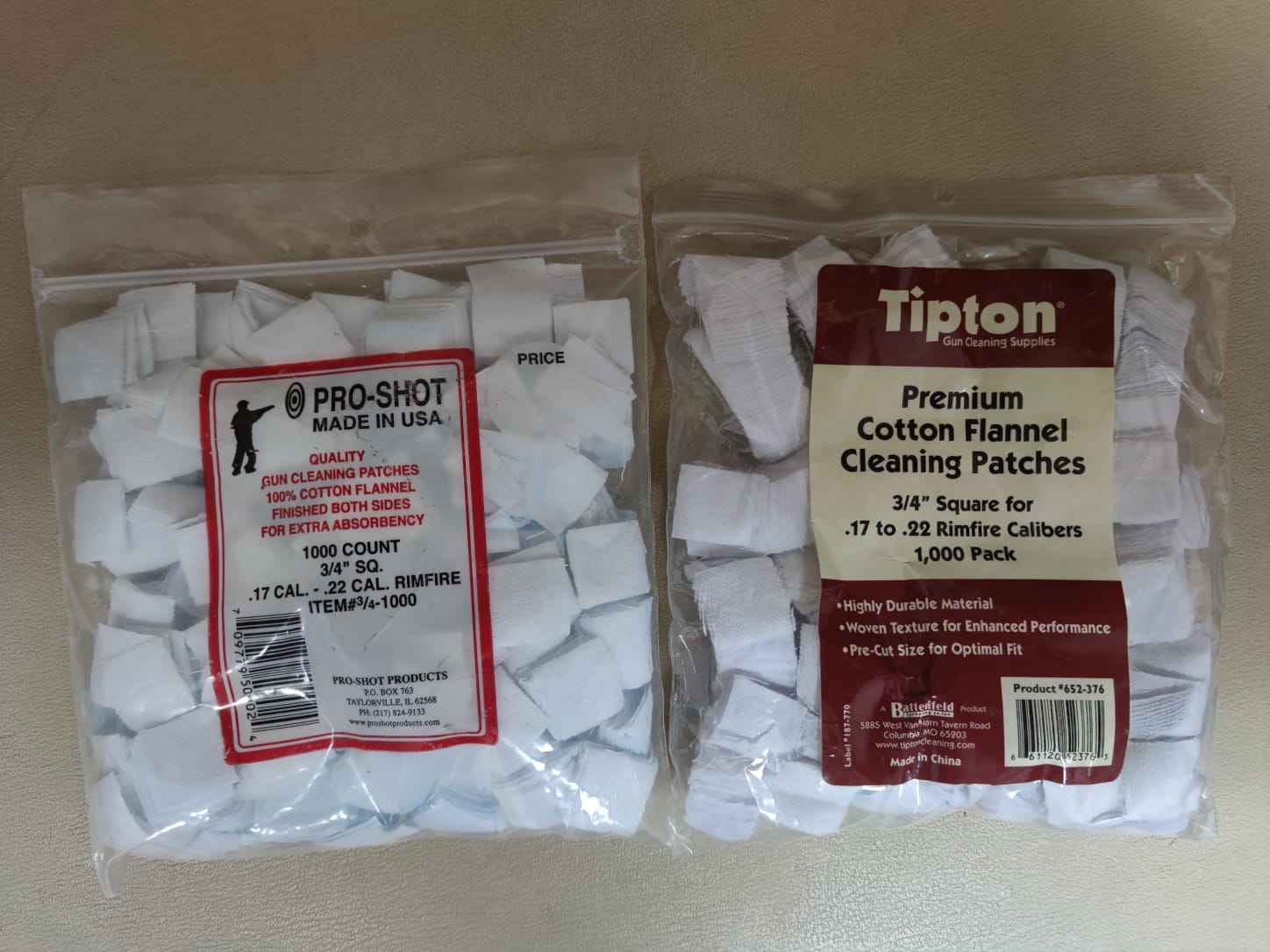 Pongo a la venta dos paquetes de parches de limpieza de 3/4" de tamaño válid para los calibres 17 y 22 RF.