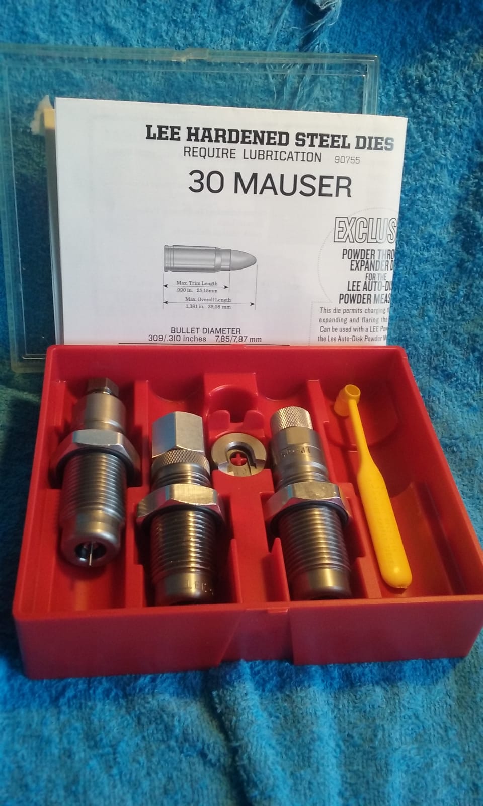 juego dies Lee calibre 7.63 Mauser en estado nuevo, solo estrenados, por 35 Eu.