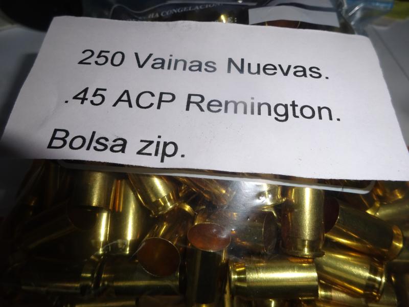 Vendo 250 vainas nuevas del .45 ACP marca Remington en bolsa zip.