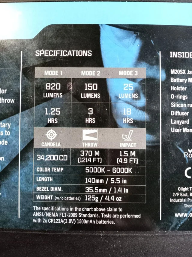 DeadPool escribió:elsantoangel escribió:Vendo Linterna táctica Olight M20SX Javelot, linterna de construcción blindada y alta dureza, incorpora la última tecnología LED Cree XLamp XM-L2 con una potencia máxima de 820 lumens y una distancia del haz de 370 metros. Ofrece tres modos de intensidad lumínica (820 / 150 / 25 lumens) más el modo estroboscópico.