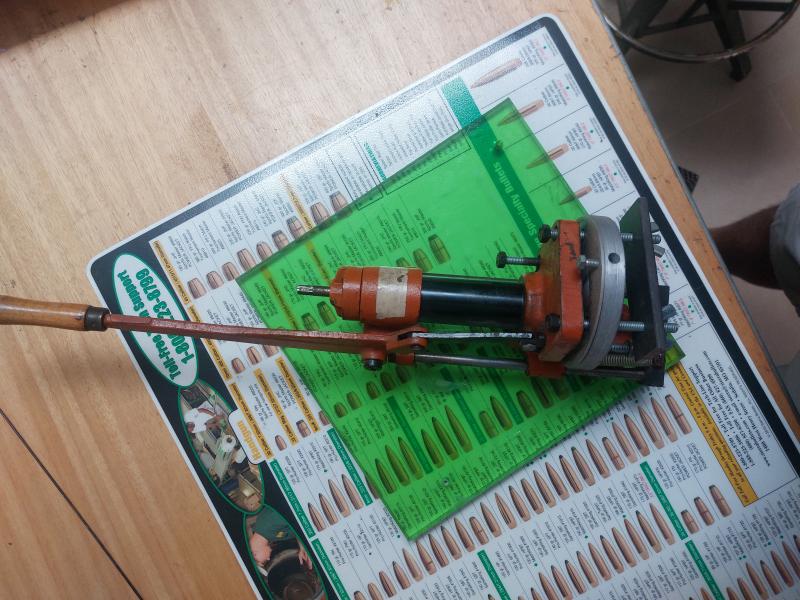 Recalibradora engrasadora Lyman con base de aluminio para alojar una resistencia para calentar la grasa. Se entrega con la resistencia, el cacho cable y la clavija para enchufar a la corriente.