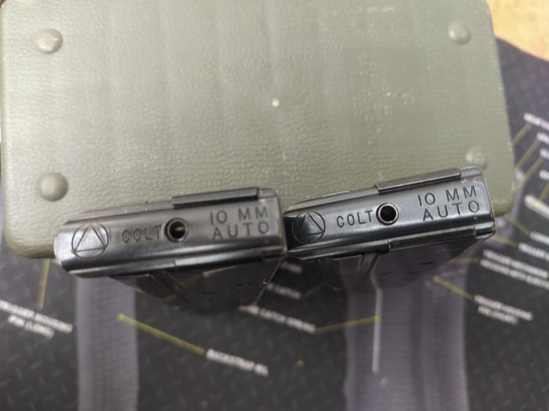 Se venden 2 cargadores originales Colt para calibre 10 mm de 8 cartuchos de capacidad.