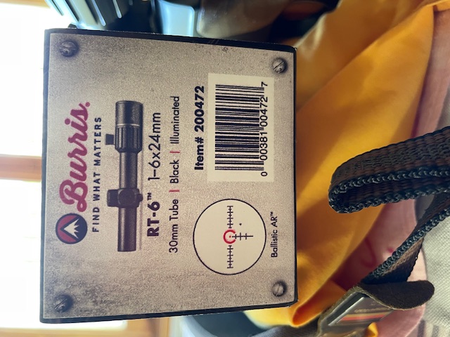 Vendo visor Burris RT6 1-6x24 con retícula iluminada. Compré nuevo y funciona perfectamente. Sin golpes ni ralladuras.