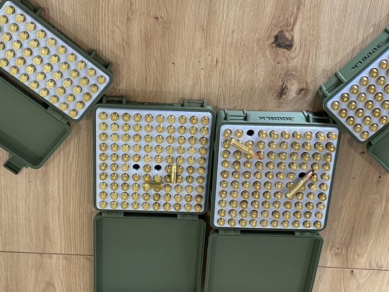 Buenos días. Ponemos a la venta cajas de municion de cualquier calibre. Si no lo tenemos, lo diseñamos y fabricamos en impresoras 3D. En color verde, apilables entre sí. En versión 50 Uds y 100 Uds. Cierre en broche.