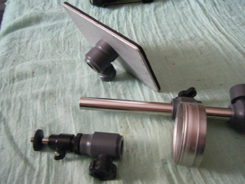 Brazo para apoyo de la carabina en la modalidad de pie. Lleva una caja para colocar los balines. Tiene un dispositivo para sujetarla a la mesa de tiro, es decir, un sargento. Es de acero inoxidable y las piezas de ajuste son de PVC. También lleva un adaptador para ajustar un visor, esto es, el soporte tiene esa dualidad. Muy poco usado.