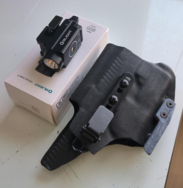 Vendo funda porte interior de kydex amgholster para CZ p10c y CZ P10S compatible con módulo de linterna Olight Baldr S