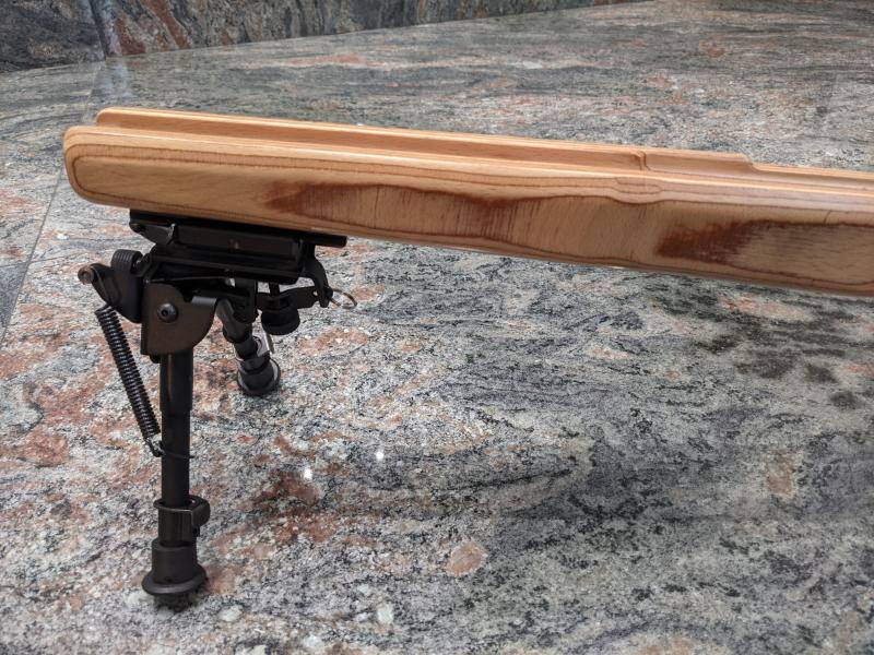 Por cambio de planes, vendo culata de madera de Haya de alta densidad para el Tikka Tx1 con riel Picatinny y bipode tipo Harrys.